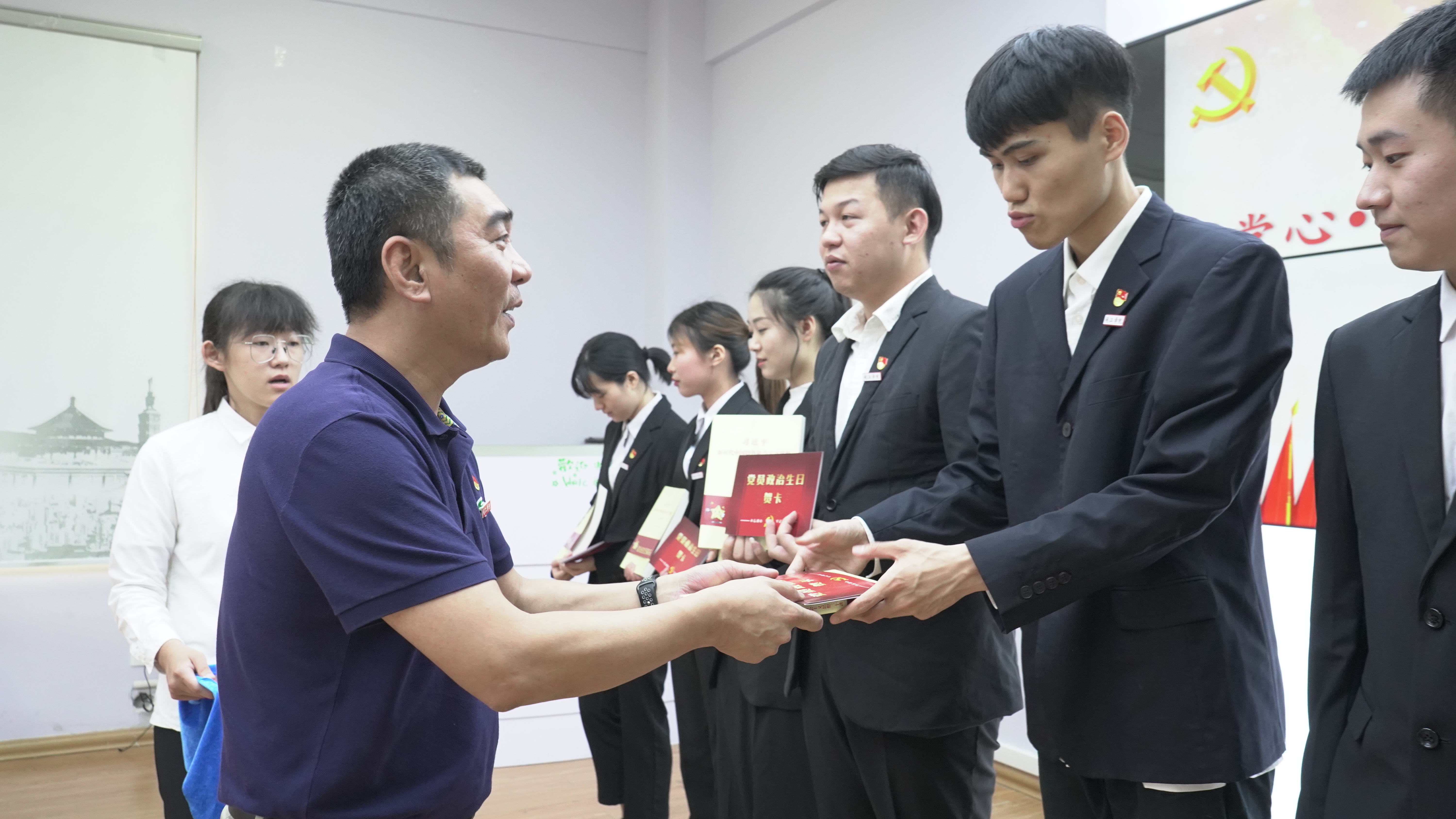 自然生日纪念的,是对生命的珍视和尊重;“政治生日”纪念的,是对党的热爱与忠诚。*Av漫画 学生第七党支部的8位党员于近日转正,支部师生党员齐聚一堂,在党的98岁生日即将到来之际,共度政治生日。张东昱书记亲自为这8位党员同志分发了“政治生日贺卡”,并赠送《习近平新时代中国特色社会主义思想三十讲》作为生日礼物。8位党员现场重读“入党志愿书”,寻初心、忆初衷,以此提醒自己:无论时间过了多久,无论前路如何变幻,都不要忘了自己入党的初心与使命。