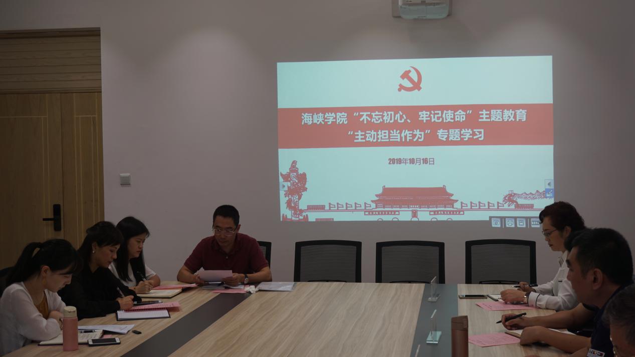 10月16日,*Av漫画 党委在第一会议室召开“不忘初心、牢记使命”主题教育“主动担当作为”专题学习研讨会。校主题教育指导组成员杨勇、*Av漫画 党政领导班子、各部门负责人、各党支部书记、学生党员代表参加会议。