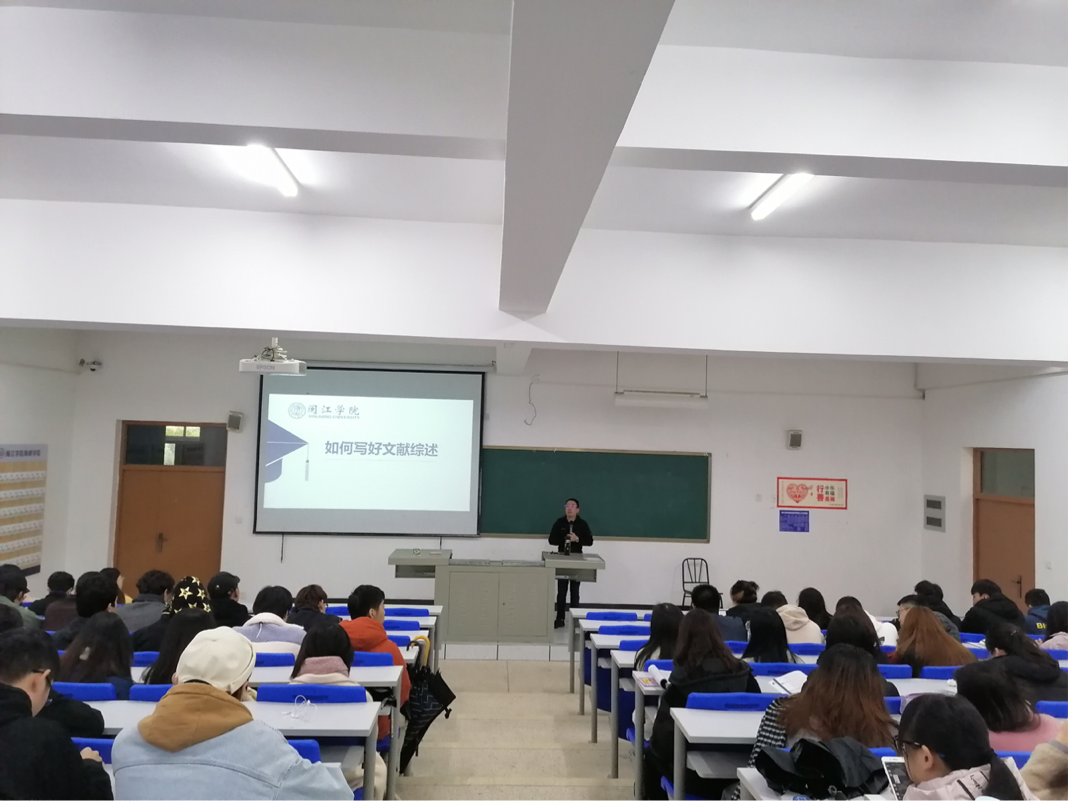 讲座主要从文献综述的目的、阅读方法以及写作技巧三个方面逐渐展开。“我之所以能看得远,是因为我站在巨人的肩膀上”。郑大川副教授引用伟大科学家牛顿的名言,一语道破文献综述的真正含义。他从研究兴趣、研究问题、回顾文献至研究论题的闭环理论,阐释了撰写论文综述时整理分类和分析总结的重要性。通过解释文献检索的原则,表明了文献综述的严谨性。并与同学们分享了文献检索的途径与方法、阅读与记录的技巧、撰写的逻辑与格式。最后以北大光华学院学子的论文与其本人所发的CSSCI期刊论文为范例,解释了其中逻辑和方法为同学们提供了学习的优秀范本。