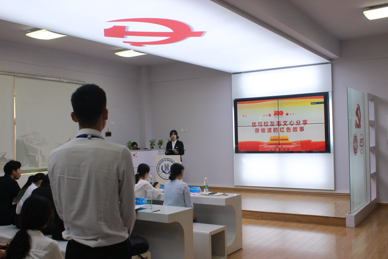 视频连线中,毛文心校友带领与会人员一起走进“全国优秀共产党员”、“时代楷模”廖俊波同志的一生。通过视频连线,她介绍了廖俊波同志的生前经历,并详细讲解了廖俊波同志担任政和县委书记期间为政和县脱贫做出的重要贡献与成就。她强调,廖俊波同志的事迹充分诠释了新时期党员的标准,我们要向“全国优秀共产党员”廖俊波同志学习,始终做到心中有党、心中有民、心中有责、心中有戒,不断增强责任意识,不忘初心、牢记使命。