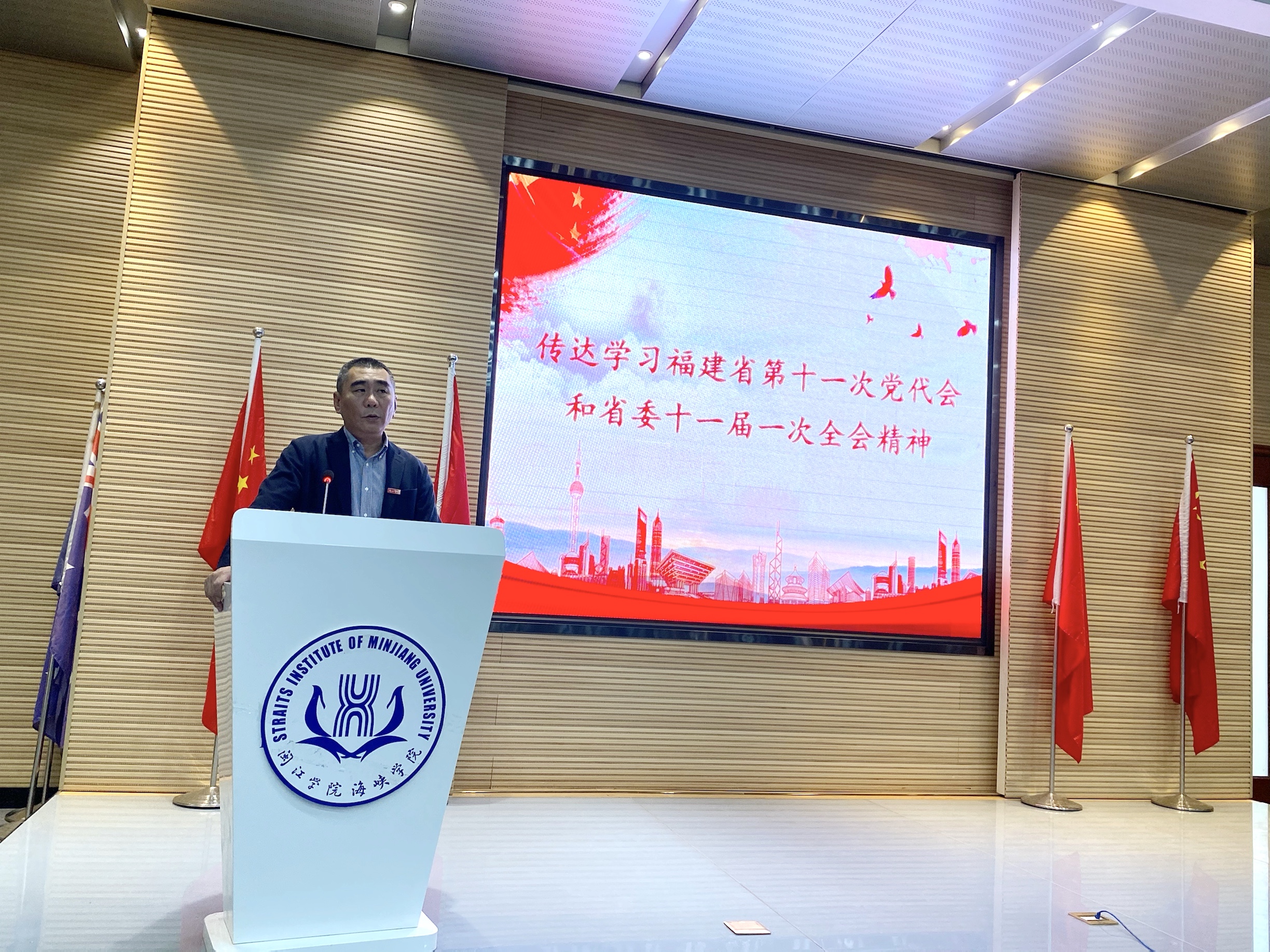 12月8日,*Av漫画 党委召开教职工理论学习会,传达学习福建省第十一次党代会和省委十一届一次全会精神。院党委书记张东昱主持会议并领学,学院全体教职工参会。