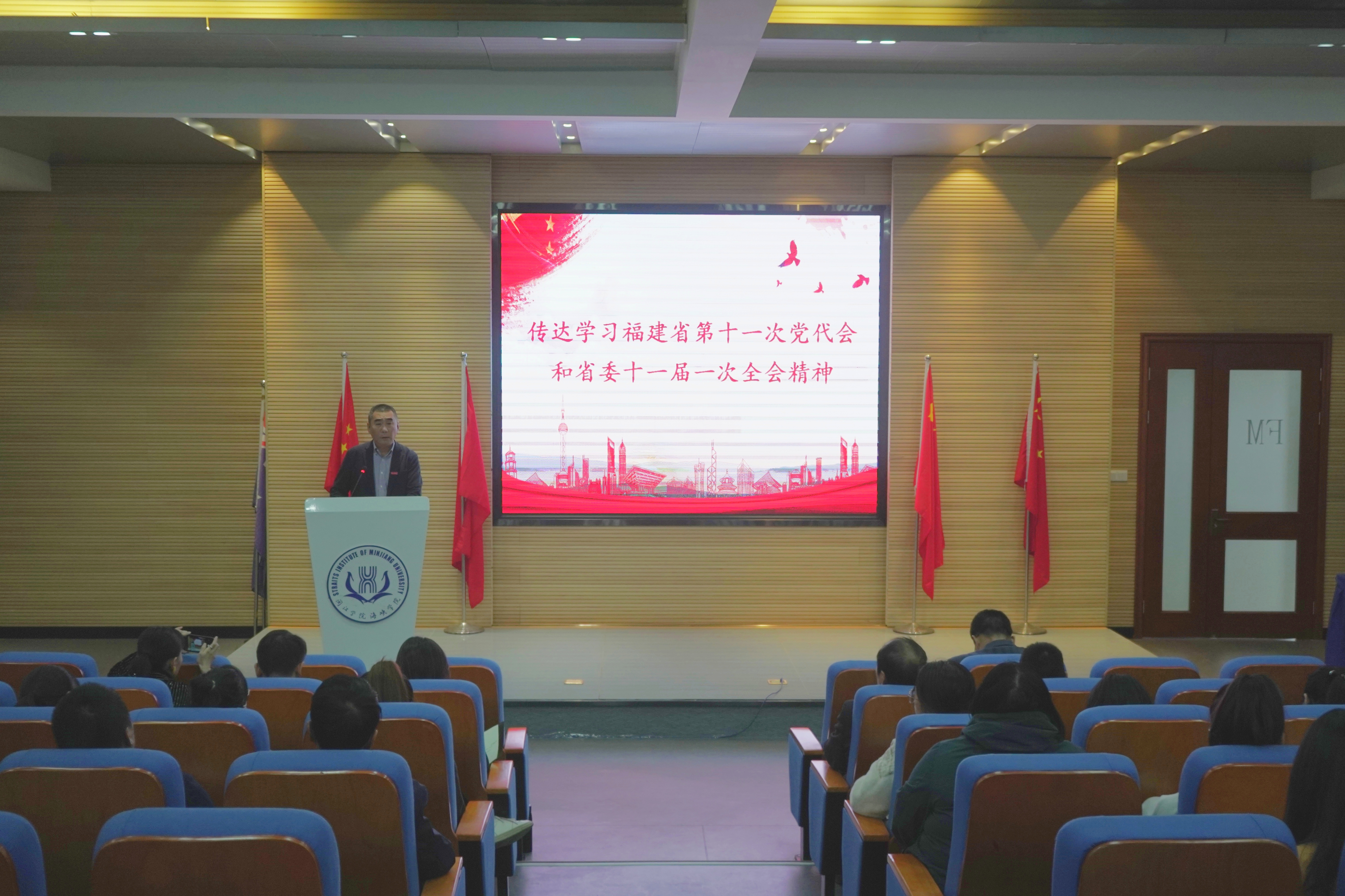 张东昱书记传达了福建省第十一次党代会精神和省委十一届一次全会精神,领学了省委尹力书记代表第十届省委所作题为《高举旗帜牢记嘱托,勇担使命砥砺前行,奋力谱写全面建设社会主义现代化国家福建篇章》的报告。他强调,全院上下要坚定理想信念,要把学习宣传贯彻省第十一次党代会和省委十一届一次全会精神作为当前的重要政治任务,以党史学习教育为契机,把学习党的十九届六中全会精神、习近平总书记“七一”重要讲话精神、来闽来校考察重要讲话精神紧密结合起来,补足“精神之钙”,筑牢“信仰之基”,把稳“思想之舵”,以思想上的清醒、政治上的坚定、行动上的自觉做到对党绝对忠诚。要从党的辉煌成就中汲取智慧和力量,牢记初心使命,弘扬担当精神,提振精气神,锤炼真本领,为建设新福建、开创新局面贡献力量。