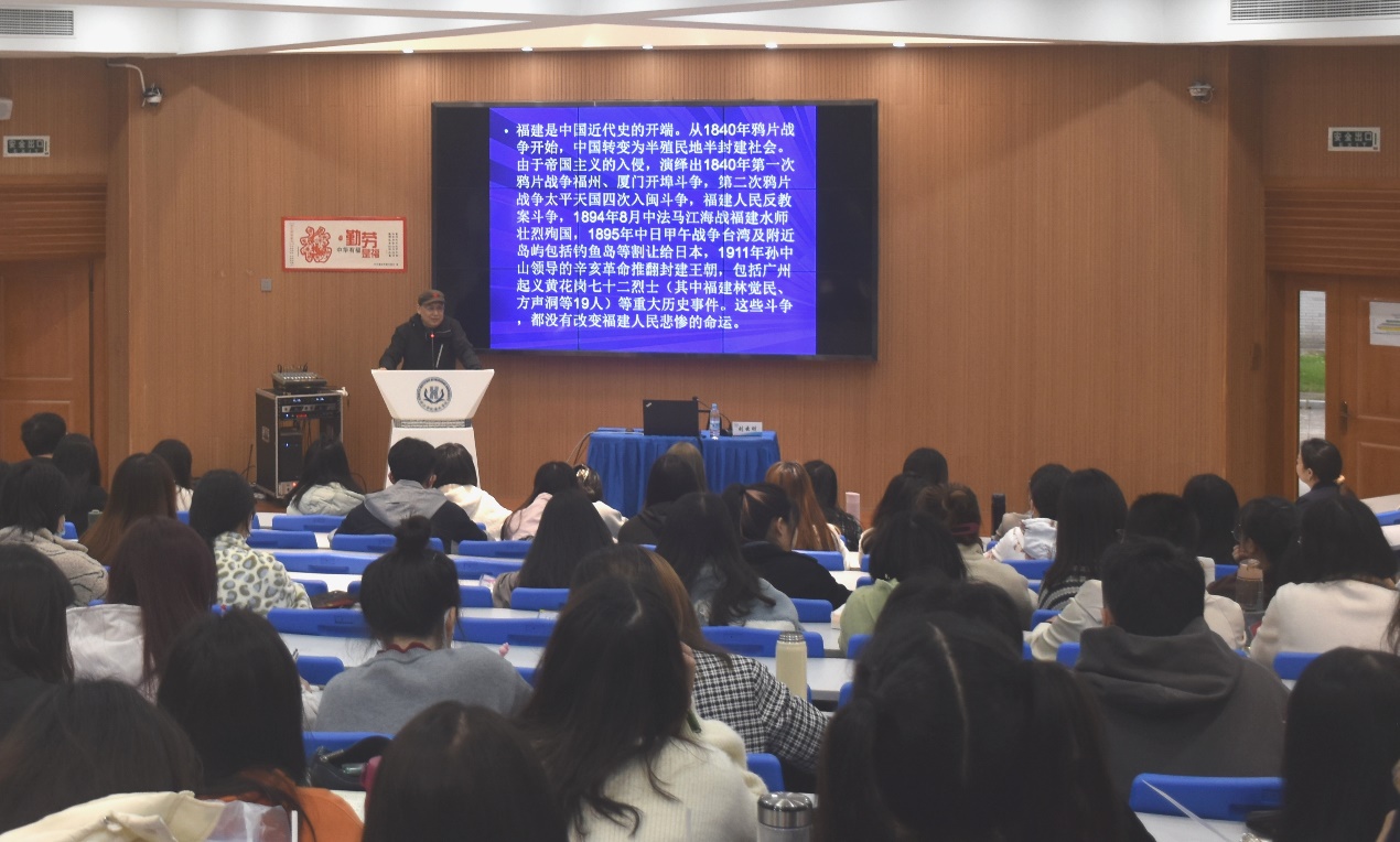 11月28日上午,*Av漫画 党委分党校第23期党的基础知识培训班第一讲在海峡楼2C101正式开课。学院特邀原福建省党史研究室副巡视员、福建省历史革命纪念馆首任馆长,福建省新四军研究会现任会长刘云刚担任主讲嘉宾,全体党基班学员出席听课。
