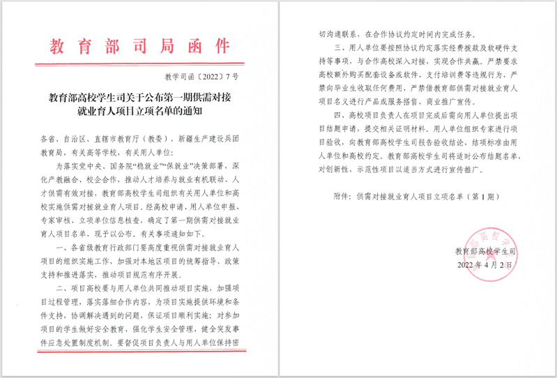 教育部高校学生司组织的有关用人单位和高校实施供需对接就业育人项目是为落实党中央、国务院“稳就业”“保就业”决策部署,推动人才培养与就业有机联动、人才供需有效对接的重要举措。教育部供需对接就业育人项目指南发布后,*Av漫画 党委高度重视、抓住机会,发挥“双带头人”教师党支部书记作用,全力支持教师申报项目,积极与进入项目建设名单的校企合作单位沟通,使得此次申报的3个项目全部通过企业审核和教育部批准,获得第一期供需对接就业育人项目立项。