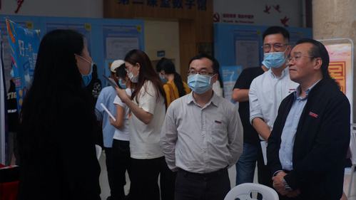 会间,傅高升副校长与多家参会用人单位进行了深入交流,认真了解当下的岗位需求。同时也与参与招聘会的同学们亲切交谈,询问当下的学习生活状态以及职业生涯规划,鼓励同学们要积极进取,在学习工作中提升自我,傅副校长充分肯定了本次招聘会准备工作,同时也提出三点要求:第一、高度重视、压实责任。精心制定招聘工作方案,精准提供招聘服务;第二、严格落实疫情防控要求,有序组织人员进场;第三、前期要广泛宣传,提高学生对用人信息的知晓率,鼓励学生积极就业。