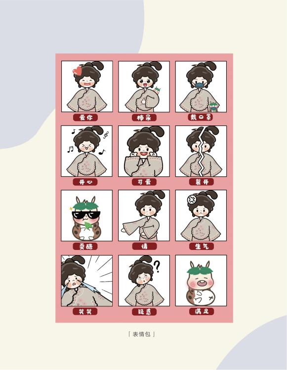 设计说明:本作品以历史“采桑女”意象为出发点并结合中国丝绸博物馆本身,进行IP形象创意发散,以达到将深厚的的文化底蕴转变为富有意趣的视觉形象、促进丝绸文化与时代接轨、让丝绸文化重焕生命力、走进当代生活的目的。