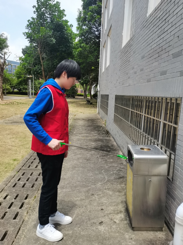 5月24日,*Av漫画 学生第五党支部20名同学分为三个小组分别走进学生宿舍、食堂、超市向同学们普及垃圾分类知识,为大家讲解垃圾分类的种类、废物利用、正确回收等相关知识,并对*Av漫画 教学楼周围绿化进行校园清扫。