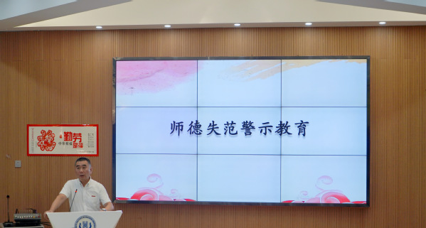 随后,院党委书记张东昱做师德失范警示教育。他通过教育部近4年公布的十批共72起违反教师职业行为十项准则典型案例,引导全体教职工以案为鉴、自警自省。他强调,要始终坚持以立德树人为根本,牢记为党育人、为国育才使命,扎实推进师德师风建设。