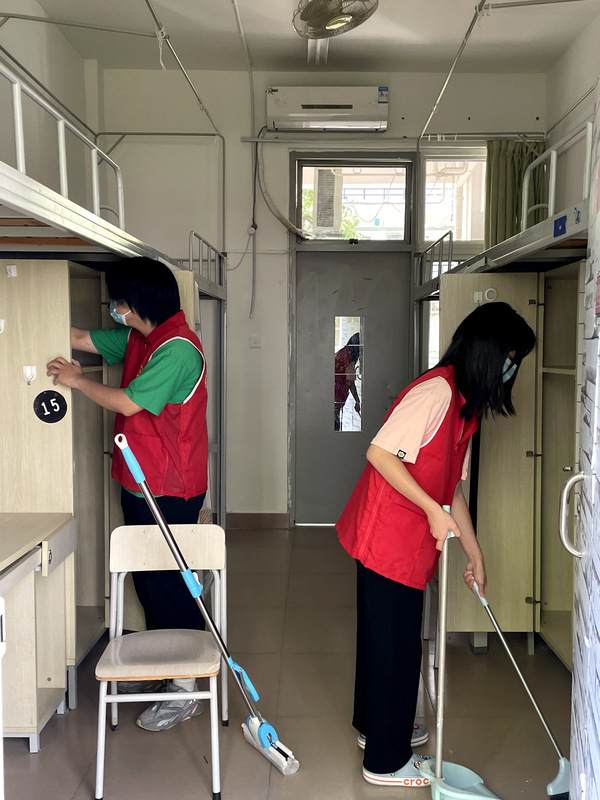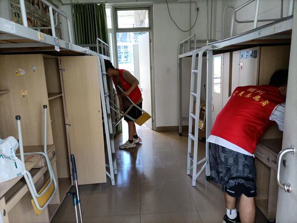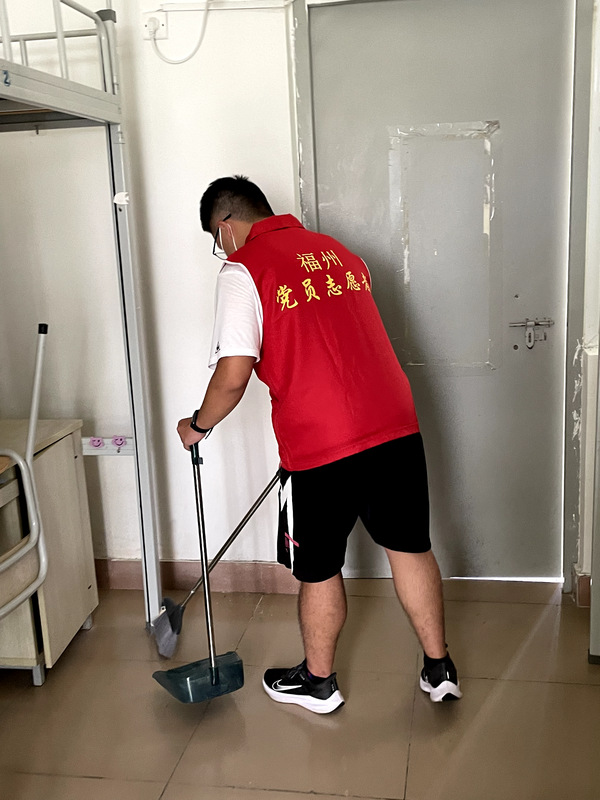 志愿服务暖起来,共绘闽院新气象。活动当天,最美的“志愿红马甲”成了宿舍区一道亮丽的风景线,党员们通过自己的实际行动,向新生传递温暖与爱心。党员志愿者们在打扫时,每个细节都不放过,每个角落都不错过,他们拎着清扫工具奔走在各个宿舍间,提着水桶、拿着抹布为新生们擦拭床板、桌面,并用酒精仔细做好消毒工作。每一间焕然一新的宿舍,都是志愿者们留给新生们最有爱的礼物,同时也是他们对新生们寄予的殷切期望。