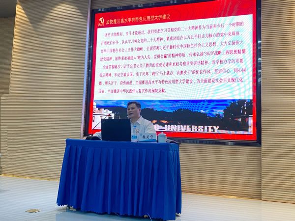 张庆守从“关于党的二十大的主题、主要成果”“关于过去5年的工作和新时代10年的伟大变革”“关于马克思主义中国化时代化”“关于中国式现代化”“关于全面建设社会主义现代化国家的目标任务”“关于坚持党的全面领导和全面从严治党”“加快推进高水平有特色应用型大学建设”七个部分深入阐释党的二十大精神。宣讲报告充分展现了全校师生深入学习宣传贯彻习近平总书记来校考察重要讲话精神,始终遵循正确的办学理念和办学定位,坚定不移走应用型办学之路,切实把习近平总书记的重要讲话精神贯彻落实到办学治校的全过程的生动画面。张庆守在宣讲报告中强调,要认真学习领会党的二十大精神,传承弘扬“3820”战略工程思想精髓,坚定信心、同心同德,埋头苦干、奋勇前进,全面推进高水平有特色应用型大学建设,为全面建设社会主义现代化国家、全面推进中华民族伟大复兴做出闽院贡献。