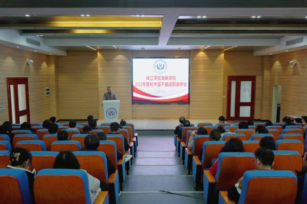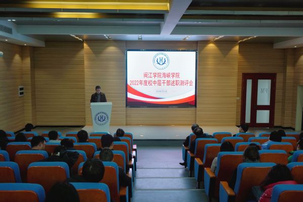 2月15日下午,*Av漫画 在1B108召开2022年度校中层干部述职测评会,学院全体教职员工参加会议,会议由学院党委副书记洪晓林主持。