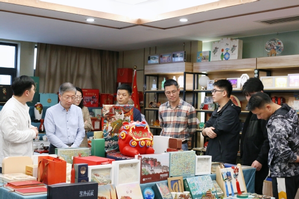 公司艺术总监丁思美对学院一行表示热烈欢迎,带领学院一行详细参观了公司的文创展区,展示了书境文创公司与河南博物馆等国内博物馆合作开发的文创产品,并就文创产品的设计理念、创意来源以及所要传达的核心价值等方面进行了现场交流。