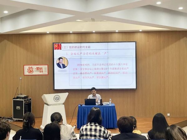 洪晓林副书记结合学习贯彻党的创新理论的收获体会,以入党条件作为切入点,以不同国家政党之间的区别作为辅佐证明,围绕“全面从严治党是党的自我革命的伟大实践”“全面从严治党是新时代党的建设的鲜明主题”“深入推进新时代党的建设新的伟大工程”三个篇章教育引导全体学员要保持初心,以自我革命引领伟大社会革命,做勇于自我革命的战士;要有大局观,坚持实践实干实效,增强“四个意识”、坚定“四个自信”、做到“两个维护”,坚持理论武装、照镜正衣,从政治生活“严起”;要从思想上固本培元,聚焦新征程上党的建设的重大任务,坚持在学懂弄通做实上下功夫、在结合实际创造性贯彻落实上下功夫,坚持用习近平新时代中国特色社会主义思想凝心铸魂。
