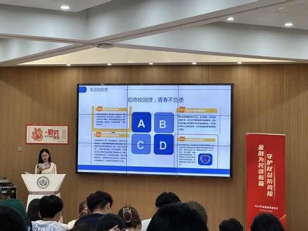 随着信息技术的飞速发展,网络诈骗成为诈骗盛行的主要表现形式之一。鞠昕睿女士通过诈骗案例视频展示及案例剖析,引出对校园贷、AI换声拟声、网络退款、保本保息的诈骗投资等几种常见诈骗类型的介绍。随后以“校园贷”此类在大学校园发生较多的且贴近大学生生活的案例为切入点,详细讲解了网络诈骗与电信诈骗的常见手段、识别方法及防范措施,教育引导学生们深入了解不同诈骗手段的危害性,学会如何有效保护自己的财产安全和个人信息,特别提醒大学生们要理性消费,远离非法校园贷和套路贷。