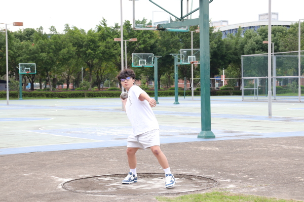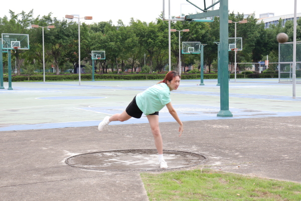 铅球在运动员手中闪着耀眼的光芒,挥舞的手臂爆发出排山倒海的气势,一托一举一间,一道完美的弧线一闪而过,“铅”钧一发。