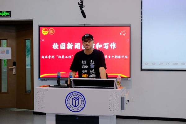 讲座伊始,李晨曦记者讲述了新闻采访包括新闻写作和新闻摄影两个方面。在新闻写作方面,他重点指出了在新闻写作的过程中要注意真实性、时效性和新闻点。针对初学者如何避免心态不好、记流水账、不会取标题的问题,李记者表示:在日常生活中,我们要摆正心态,提前做好准备,写好框架,用“新闻眼”多观察多思考,注重新闻价值,实事求是,在每一次的新闻练笔中不断提升自己的能力。