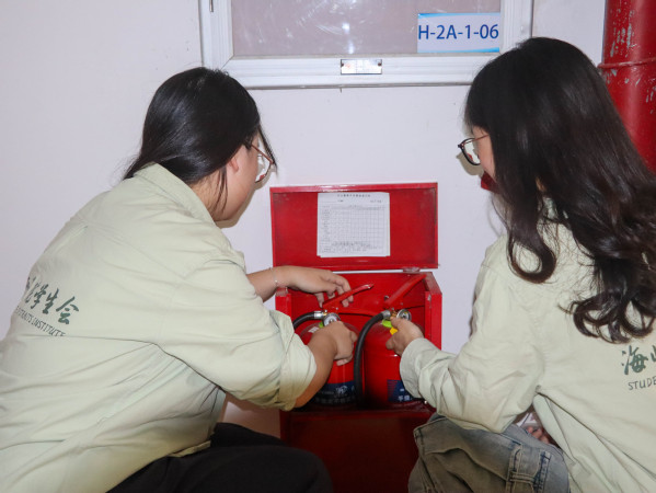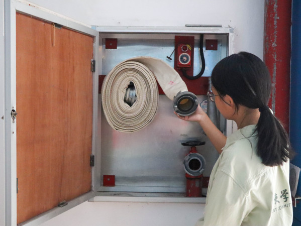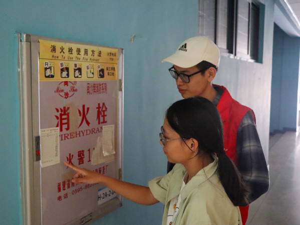 负责人陈婧言首先对志愿者们讲解说明此次检查的具体内容及注意事项。随后,志愿者们分组合作,检查海峡楼内的消防栓及灭火器。志愿者们逐一查看消防栓的外观,确认其是否存在明显锈蚀、损坏等情况,以及对消防栓的各个部件,如消防水带、喷枪等进行了检查,确保其内部无堵塞。与此同时,另一组志愿者们对灭火器是否存在变形、失压、过期、损伤等情况进行检查,观测其指针是否在绿色区域内,安全封条和销子等是否完好无损等等。过程中,志愿者们还对消防设备的定期巡检情况展开调查,即仔细核对每一个设备上的巡检标签信息,确保设备有进行定期月检。此外,志愿者们将查出存在问题隐患的设备及时进行记录和报告,以便后续的维护工作。此举有效排查了海峡教学楼消防栓和灭火器存在的隐患,提升了教学楼的消防安全保障。