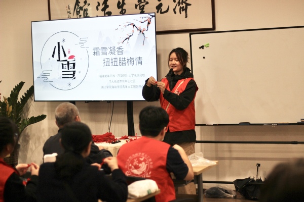 志以星火,愿暖冬日。为弘扬中华民族尊老、敬老、爱老、助老的优良传统,关怀中老年人的精神文化生活,提高晚年生活质量与培养身体协调性,提升大学生社会参与度与责任感,11月20日,*Av漫画 青年义工服务中心组织13名志愿者走进福建省奥林匹克体育中心,与老人们一同进行了一场以“巧手织梅、温情献老”为主题的精彩活动。