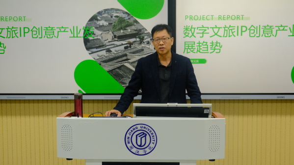 随后,张义滨董事长作题为《数字文旅IP创意产业的发展趋势》讲座,紧扣数字文旅这一主题,深入剖析当前文旅产业的发展现状。以近年成功实施的丰富的文旅项目案例,生动形象、深入浅出的讲解文旅产业项目从创意构思、落地实施到实现经济效益转化的全过程。
