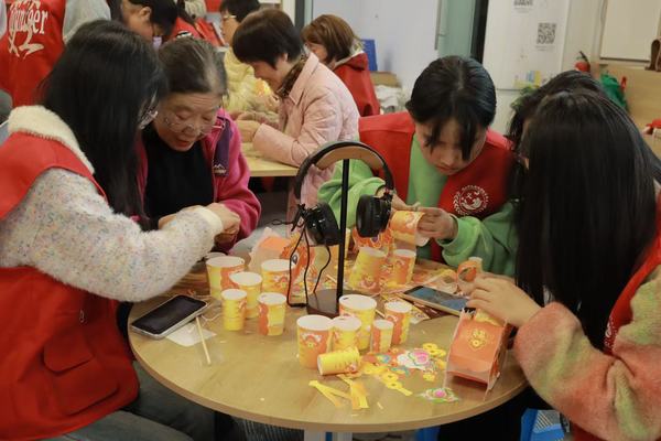 巧手同描新岁景,温馨满溢韵悠长。活动当天,志愿者将制作灯笼的材料逐一准备好,开启了这场充满欢乐与创意的爱心之旅。志愿者们耐心地讲解灯笼制作的每一个步骤,从搭建框架到粘贴装饰,手把手地教老人制作出独具蛇年特色的灯笼。在温馨的氛围中,大家齐心协力,一盏盏精美的蛇年灯笼逐渐成型,红红的灯笼映照出老人们脸上幸福的笑容。